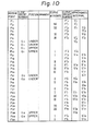 - Figure 3 shows the bending point attribute table 21 which comprises the extracted bending point including coordinates and attributes thereof, such as a line group number representing a pair of horizontal lines or vertical lines, a position point representing the position of the bending point, i.e., left, right, above or below with respect to the horizontal line and vertical line, the ornament, the curve attribute which is the result of the four direction classification of the vector formed by the bending-points Pi and Pi+1 , a curve group number representing a pair of curved strokes, and the curve approximation interval to which the bending point belongs.