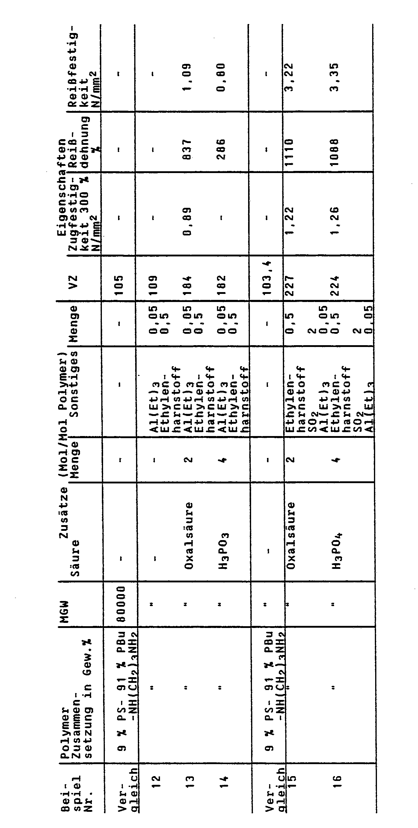- Die mechanischen Daten (Zugfestigkit bei 300 % Dehnung, Reißfestigkeit und Reißdehnung) wurden bestimmt an Prüfkörpern von 2,5 mm Stärke, die nach DIN 53 455 aus zwischen Teflonscheiben gepreßten Platten ausgestanzt wurden.