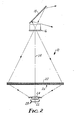 - One method of increasing the light intensity at the margins of the Fresnel lens assembly 26 is by the use of an annular reflector 28, which may be a truncated sphere 30 as illustrated in FIGURE 4 or an annular Fresnel 32 reflector as illustrated in FIGURE 5. The center area of the annular reflector 28 is eliminated to prevent a contribution of reflected light to the central region of the Fresnel lens assembly 26.