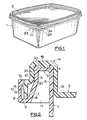 - the container 1 has an outwardly turned lip 3 which has a lateral portion 4 and a depending portion 5 spaced from the circumferential wall 6 of the container.