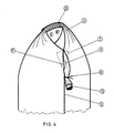 - This seam 9 starts at approximately the same distance from the top of the lifting loop 4 as the seam 2 and joins the edges of the piece 1 changing the opening 6 into 6 ⁇ of approximately the same size as the opening 5.