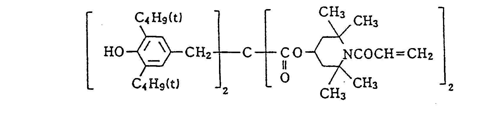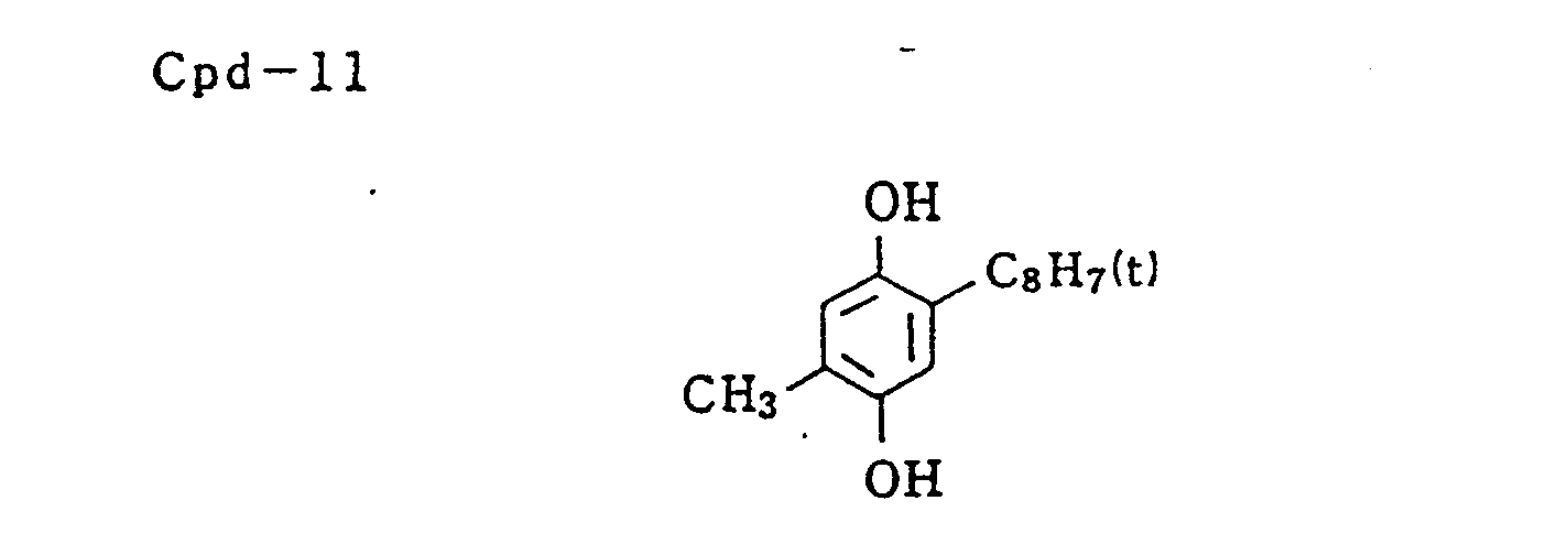 - a monomer coupler having a portion represented by formula (1) and a non-color-forming ethylenically-unsaturated monomer ⁇ e.g., acrylic acids such as acrylic acid, a-chloroacrylic acid, and methacrylic acid, or esters or amides derived from acrylic acids (e.g., acrylamide, n-butyl acrylamide, n-butyl methacrylate, methyl methacrylate, and ethyl methacrylate) ⁇ are, in a suitable ratio, dissolved into or mixed with a soluble organic solvent (e.g., dioxane and methyl cellosolve), and polymerization is initiated at a suitable temperature (about 30 to 100 C) by a physical action, such as radiation by ultraviolet rays or higher energy or by a chemical action of an initiator such as persulfates, hydrogen peroxide, benzoyl peroxide.