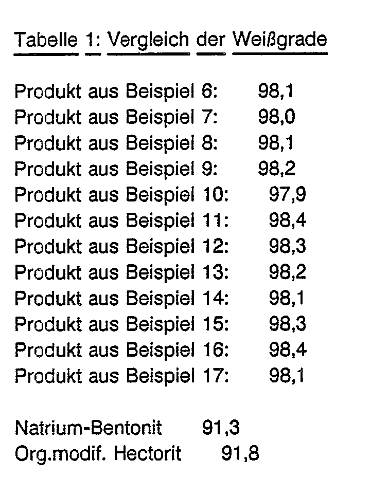 - B Na + ions exchanged for positive quaternary ammonium ions with long-chain organic residues (see Jordan, JW, Jour. Phys. And Colloid Chem. 53, 294, (1949) and Jordan JW and co-workers, Kolloid Z., 137, 40 ( 1954) or European patent application 0 204 240 and DE OS 31 45 449 etc.