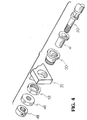 - Region 42 contains bushing 50, bushing nut 58, and arm 35, which form an integral structure wherein the bushing 50 is secured within a cylindrical aperture of arm 35 by bushing nut 58, which is threaded onto a threaded surface 50t of bushing 50.
