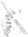 - the beam 26 is suspended in a trapezoidal beam system at 24, cf. FR-PS No. 1564543. Springs are futhermore provided which absorb possible shocks during the driving.
