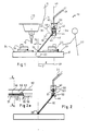 - the fork 42 is provided with two downward tines 43 and 44, which also in the direction of arrows 45 around the Axis 49 are rotatable.