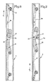 - This slide rail 31 carries locking hooks 32 which cooperate with the handlebar 30 and lock this handlebar in the illustration according to FIG. 1. 1, the locking hooks 1 are moved downward, they release the locking with the handlebars 30 and come with their rear side into contact with a sliding skid 35 of the handlebar below and thereby move the handlebars 30 into space of the guide rail 1.
