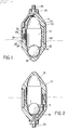 - the regulator device comprises a hollow plastics float body 10, which has a cylindrical center portion and frustoconical end portions. Internally, the body defines a cylindrical chamber 12 in which a ballast in the form of a relatively heavy steel ball 14 can move freely. At each end of the chamber 12 are roughly hemispherical sockets 16 and 18, the edges of which are defined by respective inwardly extending annular ridges 20 and 22. The inner diameter of the ridges 20 and 22 is slightly greater than the diameter of the ball 14. The ridges are coaxial with the central portion of the body.