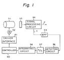 - a counter or back electromotive force (EMF) signal is typically generated by the lens drive motor 2 in association with its rotation, and the counter electromotive force signal is supplied to the controller 10 through the driver interface 11 as a frequency generator (FG) signal used by the controller 10 to detect the rate of rotation of the lens drive motor 2.