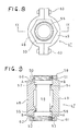 - Inclined bearing surfaces 60, 62 formed in the inner periphery of the nuts 59, 61 come in contact with the inclined bearing surfaces 51, 53 of the upper end projection 50 and the lower end projection 52.