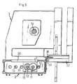 - the supports are pivotally connected with the machine bed by means of a pivot pin 33 and are spring-biased, by means of a spring mechanism (not shown), in counterclockwise direction (Figs 4 and 5), which means that they are biased upwardly to the position shown in Fig. 5.