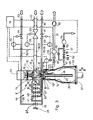 - valves 48 and 57 by means of corresponding control elements provided on a stationary control ring when the rotor 1 rotates, the function of the valves 48 and / or 57 also being able to be achieved by the rotary distributor 21 that this rotary distributor 21 is designed as a rotary slide valve arrangement.