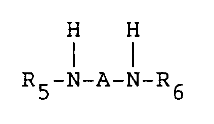 - the polyfunctional amine compound in the component (B) of the present invention includes an aliphatic amine, such as ethylenediamine, trimethylenediamine, tetramethylenediamine, hexamethylenediamine, nonamethylenediamine, diethylenetrimamine and the like; an alicyclic amine, such as isophoronediamine, 4,4′-diaminodicyclohexylmethane, 4,4′-diaminodicyclohexylpropane, hydrogenated xylenediamine, dipentenediamine, diaminomenthene and the like; a diamine of which an amino group is not directly bonded to an aromatic ring, such as ⁇ , ⁇ , ⁇ ′, ⁇ ′ -tetramethylxylylenediamine, xylylenediamine; a secondary diamine represented by the following formula: wherein R5 and R6, which are the same or different, represent methyl, ethyl, n-prop
