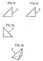 - the piece 2 shown in Fig. 2 consists of a right pyramid with a square base, the height of which is equivalent to one half of the side of the base, this figure being equivalent to one half of the preceding, if this is regarded as having been cut through a plane coincident with the maximum square of its plan according to Fig. 3 and which is the same, the piece in Fig. 1 being equivalent to two units of the piece in Fig. 2 which have been joined at their quadrangular bases.