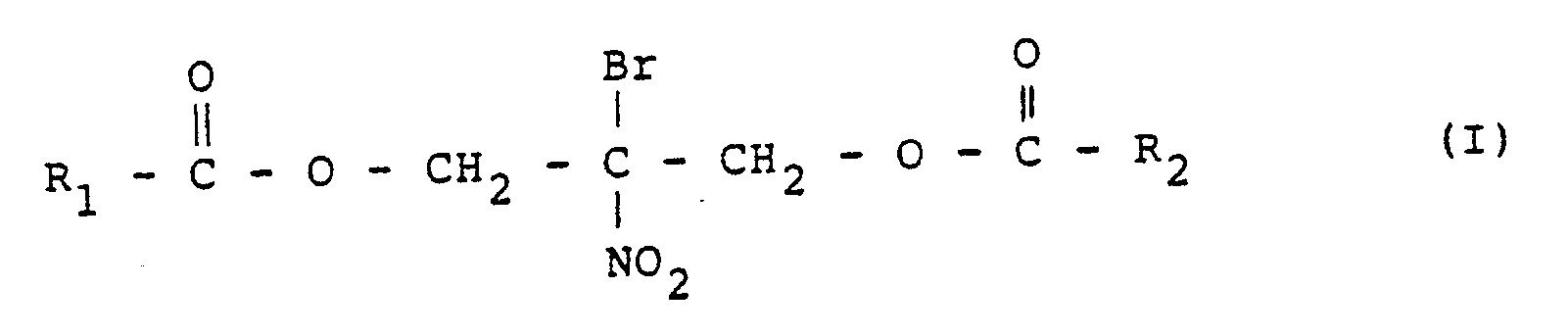 - the compounds of the formula (I) in the present invention include 2-bromo-2-nitro-1,3-diacetyloxypropane(referred to as BNDAP hereafter) and 2-bromo-2-nitro-1,3-diformyloxypropane (referred to as BNDFP hereafter).