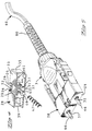 - Each of portions 2 and 56 includes a corresponding front end 4, an externally threaded cable entry 8 on a rear portion 6, a corresponding latch or hasp 10, a corresponding lug 12, a latching arm 14 including a latching lug 16, an external gripping surface 34 near the cable entry projecting outwardly inclined toward the rear 6.