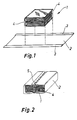 - a second component of the package comprises a rectangular blank of cardboard 2, preferably with reinforcing strips 3 folded at its edges.