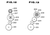 - Fig. 12 shows an example of the mechanism for transmitting rotation of driving gear 201 to take- up gear 203 and then to encode plate 206.