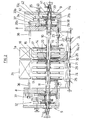- the compartments laterally delimiting, ring-shaped, inner and outer guide disks 16 and 17 are provided. These are accommodated on disk carriers 18 and 19, which are laterally slidably slidable on the associated shaft pieces 10 and 11 and encompass the shaft pieces.
