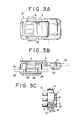 - the female member 10 has on its bottom side three studs 24, 24, 24 which, as shown in FIG. 3B, pass through the strap 25 first and are fastened at their distal ends to a base plate 26 for firm attachment of the strap 25 to the female member 10. Coupling and uncoupling operation of the male member 1 and female member 10 is now described hereinbelow.
