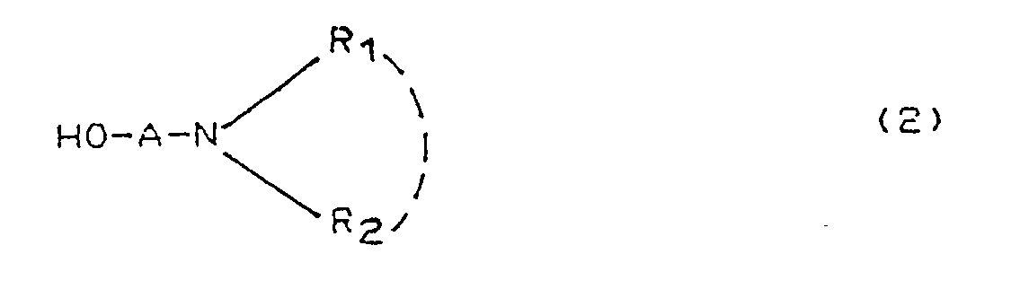 wherein A, R₁, R₂, R₃ and R₄ have the same meanings as defined in reaction schemes II and III. - According to this first process, 2-chloronicotinic acid (1), in form of the acid chloride, is reacted with an at least equivalent (by mole) amount of an alkanolamine (2) in the presence of an organic base, preferably a tertiary amine such as triethylamine, in a sufficient amount to neutralize the formed hydrochloric acid. The reaction is carried out in an inert solvent and at a temperature from 20 to 80°C.