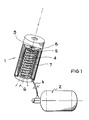 - FIG. 1 A Joule-Thomson cooler 1 with an open circuit is described in FIG. 1, in which the compressed cooling medium flows from a high-pressure gas store 2 into the heat exchanger tube 3, which is spirally wound around a metallic carrier body 4. After passing through the heat exchanger tube 3, the warm gas expands adiabatically in an expansion nozzle 5, which leads to a cooling of the working gas depending on the type of gas and pressure.