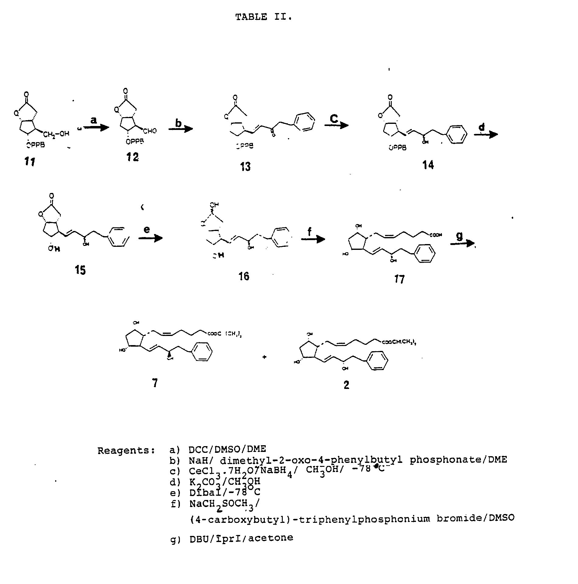 • Prosta­glandins being naturally occurring autacoids, are very potent pharmacologically and affect both sensory nerves and smooth muscle of the blood vessels. Since the effects caused by administrations of PGF 2 ⁇ and its esters to the eye, comprise in addition to pressure reduction also irritation and hyperemia (increased blood flow), the doses currently practicable in clinical tests are necessarily very low.