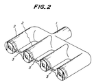 - the intermediate product shown in Fig. 2 is to be used for an exhaust manifold for a four cylinder engine, four branch pipes 2 extend from a main ceramic pipe 1. These branch pipes 2 are connected together by bar connections 3 as shown. Ends of the branch pipes 2 are cut off along phantom lines in the same manner as in the first embodiment.
