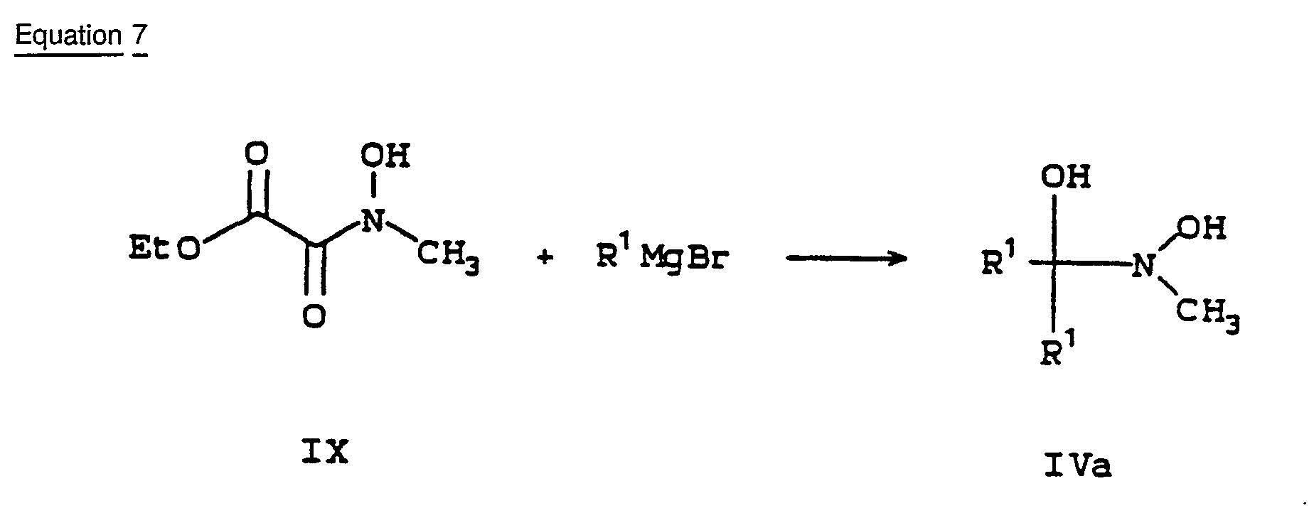 - a-hydroxyhydroxamic acids IV can also be synthesized by treating a-ketohydroxamic acids VII with an excess of a Grignard reagent. [Geffken, D.; Burchardt, A.; Arch. Pharm., 1988, 321, 311] The reactions are conducted in refluxing ether for 2 to 6 hours.