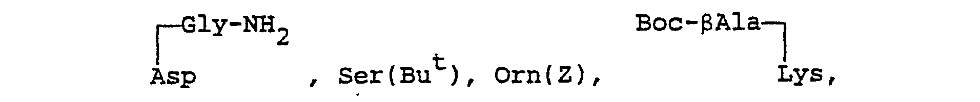 - an amino acid residue excepting D-Trp means a bivalent residue derived from an amino acid excepting D-Trp, and such amino acid may be glycine (Gly), D- or L- alanine (Ala), 9-alanine ( ⁇ Ala), D- or L-valine (Val), D- or L- leucine (Leu), D- or L-isoleucine (Ile), D- or L- serine (Ser), D- or L- threonine (Thr), D- or L-cysteine (Cys), D- or L- methionine (Met), D- or L-phenylalanine (Phe), L-tryptophan (Trp), D- or L-tyrosine (Tyr), D- or L- proline (Pro), D- or L- hydroxypropine (Pro(OH)) such as 3-hydroxyproline (Pro-(30H)) and 4-hydroxyproline (Pro[40H)), D- or L- aze