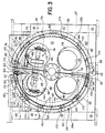 - the drum portions 24a, and 24b as illustrated in Fig. 3 are aligned along a plane that is offset in a clockwise direction a few degrees from a vertical plane through the drawing.