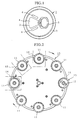 - the turret 10 which is in the form of a disc, is rotatable about an axis thereof, and is provided with a plurality of holding portions 11 formed on the periphery of an upper surface thereof in circumferentially equally spaced relation to one another.