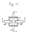 - the layer to be overlaid is formed in a desired island-shaped pattern in which the sides of the semiconductor layer are exposed outside. If the gate electrode is formed under this condition, the exposed sides of the semiconductor layer and the gate electrode are likely to come into contact with each other, thereby increasing the current leak. In order to prevent this current leak, it is required to cover the exposed sides of the semiconductor layer with an insulating layer 8 as shown in Figure 9, prior to the formation of the gate electrode.