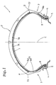 - the ends of all of the ribbons in the outer and inner layers are equally shifted or spaced in the circumferential direction around the tyre. Further, when ribbons in the same number, for example two ribbons, are used in each layer, the shifting or spacing is preferably such that the ends of the ribbons in the inner lager and the ens of the ribbons in the inner layer alternately appear at each band edge.