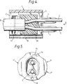 - the end wall Along a transversely extending line interconnecting the diametrically extending slit in the end wall 23 and the parallel slits therein the end wall has a step 25 intermediate of its inner and outer end surfaces so that parts of the portions 23 ⁇ of the end wall will overlie a part of the central portion 23′ of the end wall when the hinged parts 21′,21 ⁇ are closed together.