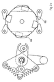 - the driven pulley 17 Shortly before reaching the new end position, as shown in FIG. 2c, the driven pulley 17 is latched by the pair of pawls 22, which act on the upper partial locking curve 25b. After each 90 ° movement, the driven pulley is latched alternately by one of the latch pairs 21 or 22.