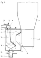 - the melting chamber 12 consists of radiation chambers 17 and the flue gases are guided through these radiation chambers 17 to nozzles 20 which open into the lower part 11 of the vortex combustion chamber 1.
