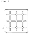 - another mask 50 with rectangular holes (0.5 ⁇ m square) as shown in Fig. 15 is brought in tight contact onto the mask 40 in a manner that each side of the rectangular hole overlaps one end of the conductor film of Cu, Au, Al, etc.