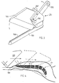 191, 192 of locating means 186 of FIG. 1 which may pivot downwardly aboutjaws point 190 until 191 and 192 contact the carcass as shown in FIG. 1. The locating means comprises a pair of downwardly dependent, rotably mountedjaws 193 and 194 with a pair of plates as shown attached at their forward end to establish contact with the carcass and centralise thearms brisket 20 with the shearing means 21. - FIG. 3 shows the shearing means 21 in greater detail. The