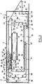 - Les tronçons horizontaux adjacents 23, 53 des trajets fermés suivis par les deux tapis 2, 5 dans la zone de pincement sont délimités, à l'entrée de la zone de pincement, par des rouleaux de guidage 35, 61 portés par le chariot d'entrée 10, et, à la sortie de la zone de pincement, par des rouleaux de guidage 38, 64 portés par le chariot de sortie 14.