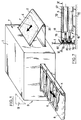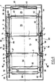- L'étaleur-nappeur représenté en perspective à la figure 1 comprend un premier tapis 2, dit tapis avant qui recueille le voile de fibres 4, par exemple issu d'une carde non représentée, et le transporte dans l'enceinte 1 où il est transformé par repliage en une nappe 6 transportée par un tablier 8 à l'extérieur de l'enceinte 1. Le tablier 8 transporte la nappe formée 6, par exemple jusqu'à une aiguilleteuse non représentée. Les sens de transport du voile 4 et de la nappe 6 sont respectivement indiqués à la figure 1 par les flèches F et K. A des fins de référence, on appellera "côté avant" de l'étaleur-nappeur le côté 7 adjacent à la face par laquelle pénètre le voile 4 et "côté arrière" de l'étaleur-nappeur le côté 9 opposé au côté avant 7.