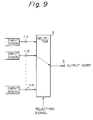 - a conventional input-output control apparatus is first described with reference to Fig. 9, in which a selector unit 2 receives various input signals from input ports 1-1 to 1-N, and in response to a selecting signal that is input to the selector unit 2, a connection and a switching are carried out so that the selected signal is output as a main signal from a single output port 3.