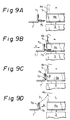 • Each of the lower grippers 7 has a vertical stationary jaw 7a and a movable jaw 7b, as shown in Fig. 5. The movable jaw 7b is moved toward and away from the stationary jaw 7a for the gripping action by a pneumatic cylinder 31, as shown by the arrow B.