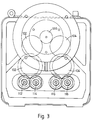 - Figure 3 shows the drive train from a common source shaft 100 via a pair of parallel idler trains 102, 104 each leading to a pair of spindles 112 114 and 116 118, and each of those spindles may be arranged with bearing sets and axial position control as shown in Figure 4 and with the seal assembly of Figure 1.