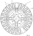 - the (in the example of FIGS. 1 and 2) a total of eight guide columns 7 (two per transport surface 18a-d) are rigidly fixed with their lower end on a turntable 11, and with their upper end under a bearing plate 26.
