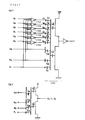 - reference numerals 3504 and 3505 indicate NAND circuits, having, respectively, 3 inputs and 2 inputs. If the inverter, the 3 input NOR circuit and the 3 input NAND circuit are constructed utilizing, for example, CMOS technology, then the structure thereof are as shown in Figs. 35(c), 35(d), and 35(e).