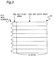 - key file 20 for the level 2 has eight key boxes, and each key box has a key flag area 20a in which a key flag indicating whether or not key data is stored, and a key data area 20b in which key data are stored.