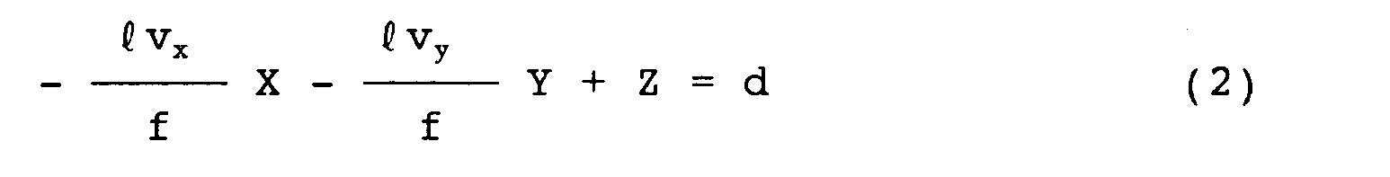 All straight lines (segments) perpendicular to one plane in a 3-dimensional space (real space) are generally converged into one vanishing point when they are projected onto a perspective view. When this plane and the perspective view are disposed in the 3-dimensional space, a vector of a normal line to this plane is parallel with a vector toward a visual point of the perspective view from the vanishing point corresponding to this plane. Accordingly, if the visual point of the perspective view and the vanishing point are known, an equation representing the plane corresponding to the vanishing point in the 3-dimensional space can be obtained definitely except for the distance between the visual point and the plane. This equation is expressed with a parameter of the distance between the visual point and the plane. The relationship between the vanishing point and the visual point is described in detail by Kondo et al "Estimation of a Point of View with Perspective Drawing and the Application" Information Processing Society in Japan, Technical Report, July, 1988 pp. 686-693.