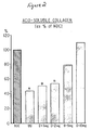 - Figure 2 is a graphic representation of the effect of CMT-1 therapy on the acid-soluble fraction of collagen in skin of diabetic rats. Note: the solubility of collagen in dilute acid (4°C) was normalized to 100% for the non-diabetic control (NDC) rats and the data for the untreated diabetics (UD) and CMT-1 treated diabetics (D + mgs CMT-1) is expressed relative to the NDC values. * Indicates that value is significantly different from NDC (p ⁇ 0.01).