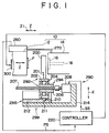 - the holder 200 As the ball screw 207 is rotated by the drive of the motor 208 shown in Figure 1, the holder 200 is moved in the direction of the arrow Z, and simultaneously, as shown in Figure 2, it is swung by a swing angle ⁇ between a retracting position P1 and a ejecting position P2.